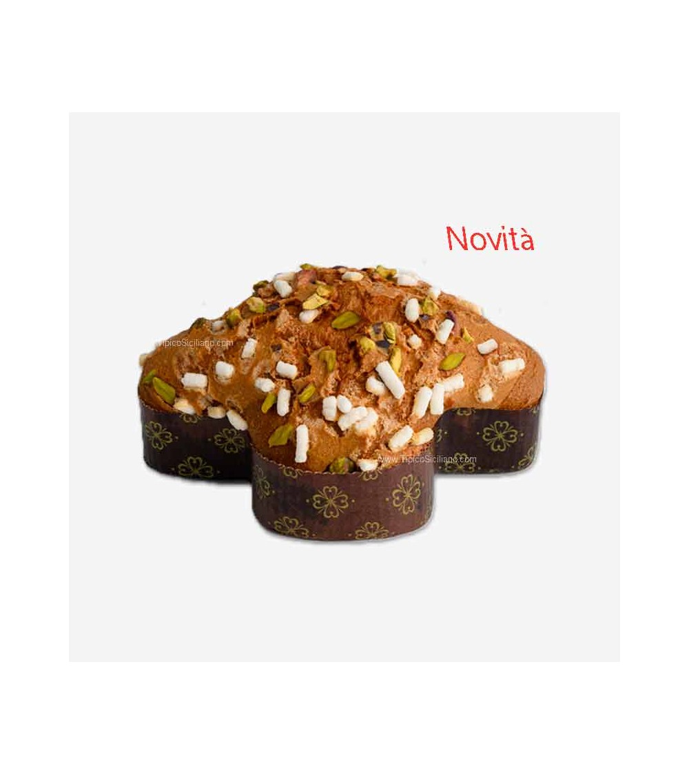 In dieser Version die Handwerksanaler Taube Fiasconaro, mit seinem natürlicher Teig Und bereichern mit Essenz von Mandarin und Mandelglasur und Pistazien mit Zucker und Pistazie dekoriert